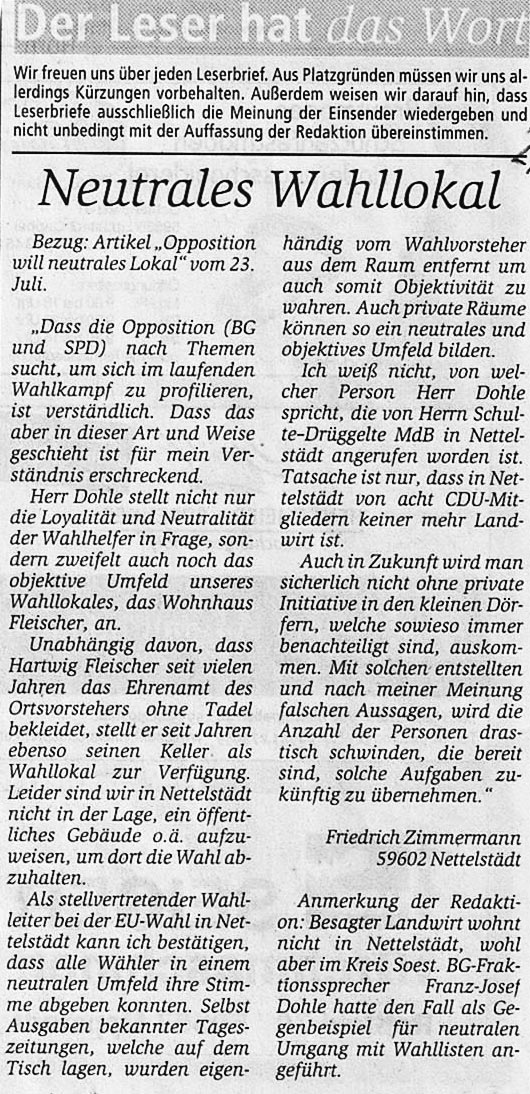 Neutrales Wahllokal, morgens in der Presse – Antwort auf 23.07.