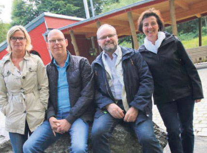 Wünschen sich hier auf dem Waldschiff-Parkplatz Elektro-Ladestationen: v.l. Susanne Dönnecke, Michael Sauerland, Franz-Josef Dohle und Annette Herbst-Köller. - Foto: Schönhense