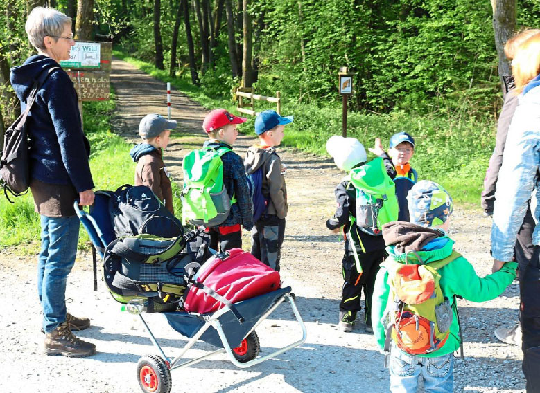 Zehn kleine Walderkunder sind zum ersten Treffen des neuen Waldkindergartens ins Bibertal gekommen. Ausgerüstet mit Rucksack, Matschhose und Proviant ging es mit vier Betreuerinnen nach einem Spiel zum Auflockern auch gleich auf Wanderschaft – und das bei bestem Wetter. Zuerst stellte die Gruppe Regeln auf: Immer in Sichtweite bleiben und die Sammelpunkte merken. Treffpunkt ist dabei jeden Freitag um 9 Uhr am Waldschiff. „Wir haben uns vorher einen Punkt im Wald ausgeguckt“, erklärt Betreuerin Heike Ströcker zur Vorbereitung. Von dort aus erkunden die Kinder dann ihre Umgebung.
