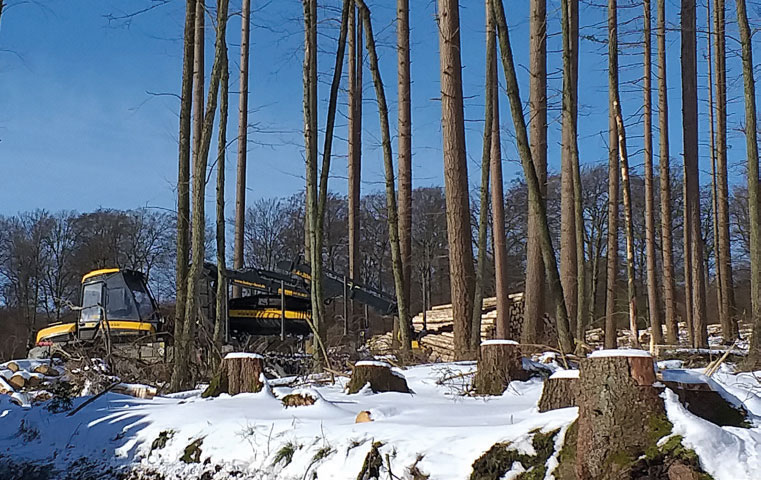 Während im letzten Jahr viel Holz von abgestorbenen Fichten nach China ging, wird nun ein Großteil des anfallenden Holzes wieder an die heimischen Sägewerken geliefert. Ein kleiner Teil der Fläche konnte im letzten Jahr schon wieder aufgeforstet werden. Dank der erhöhten Niederschläge gehen wir von einem guten Start aus.