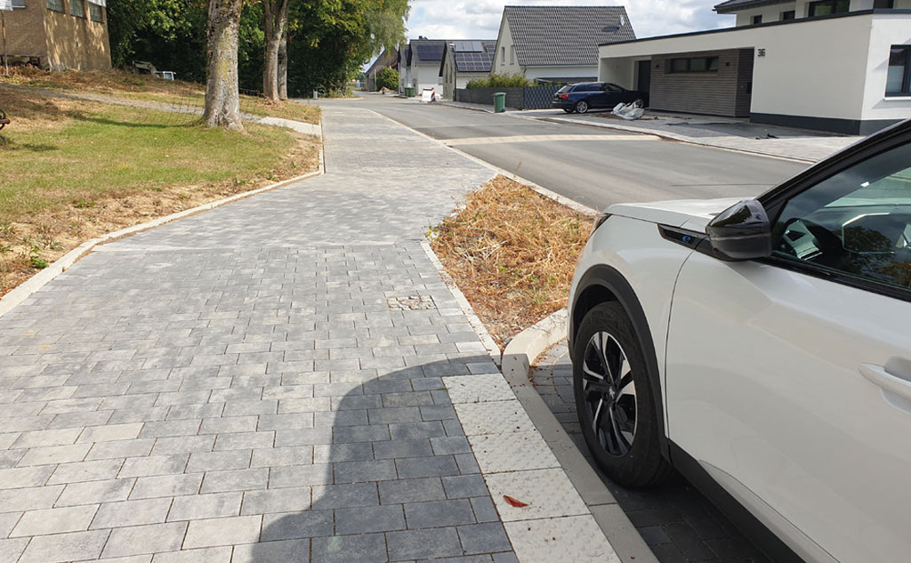 Ein weiteres Teilstück vom „Schlangenpfad“ ist nun fertig. Der Mehrzweckstreifen mit Bordsteinabsenkungen sowie Bürgersteige bringen größere Sicherheit für Fußgänger und Radfahrer.