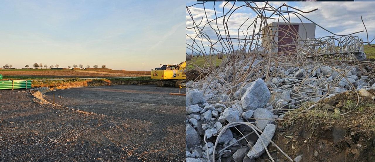 Während die alten Fundamente abgebaut werden, sind die Fun- damente für die neuen Windkraftanlagen im Aufbau.